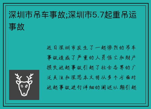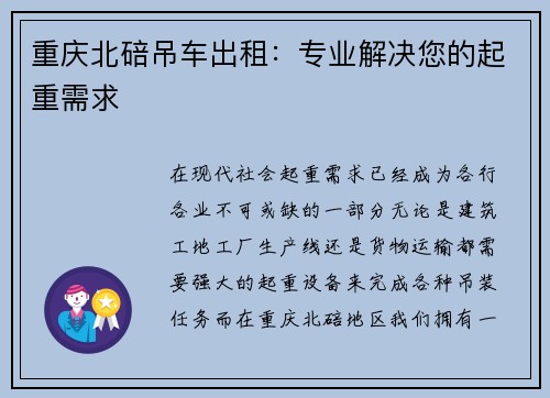 雷萨吊车铭牌是一款高效稳定的吊车,它的出现为工程提供了强有力的助力。本文从六个方面对雷萨吊车铭牌进行了详细阐述,包括其高效稳定的特点、安全性、可靠性、适用性、维护保养和服务保障。我们对雷萨吊车铭牌进行了总结归纳,强调了其在工程领域中的重要性和优越性。 高效稳定 雷萨吊车铭牌的高效稳定是其最大的特点之一。它采用了先进的技术和优质的材料,使得吊车的吊重能力和工作效率都得到了很大的提升。它的稳定性也得到...