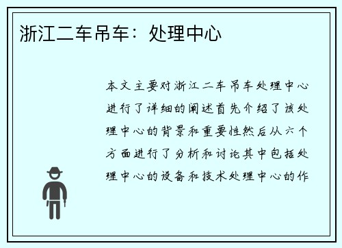 本文将围绕空调吊车展开,首先介绍空调吊车的基本概念和作用,然后从性能、应用领域、发展趋势、优势和劣势以及未来展望等方面进行详细阐述,最后对空调吊车进行总结归纳。九游会真人游戏第一品牌 空调吊车的基本概念和作用 空调吊车是一种集吊装和空调功能于一体...