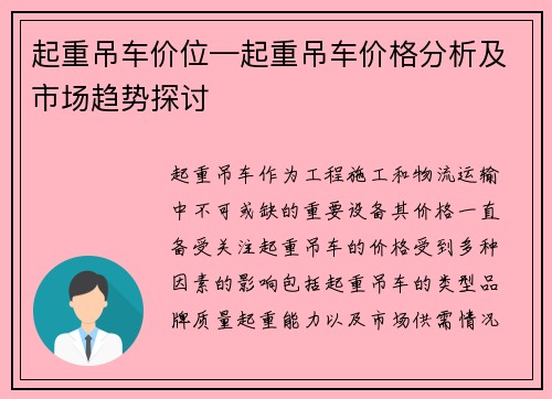 潍坊赵庙二手吊车市场:优质二手吊车交易平台 本文将详细介绍潍坊赵庙二手吊车市场,这是一个优质的二手吊车交易平台。我们将从市场规模、交易流程、价格优势、质量保证、服务体系和发展前景等六个方面进行阐述。我们将对潍坊赵庙二手吊车市场进行总结归纳。 市场规模 潍坊赵庙二手吊车市场是潍坊地区最大的二手吊车交易市场之一。市场占地面积广阔,设有多个展示区域和交易大厅,能容纳大量的二手吊车展示和交易活动。每年吸引...
