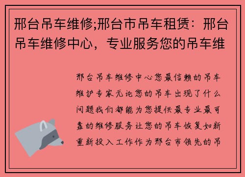阜阳卖吊车以其优质的产品和周到的服务赢得了客户的信赖和好评。本文将从产品质量、价格竞争力、售后服务、客户口碑、市场份额和发展前景六个方面对阜阳卖吊车进行详细介绍。 产品质量 阜阳卖吊车的产品质量一直是行业的佼佼者。公司引进先进的生产设备和技术,严格把控生产过程,确保每一台吊车都符合国家标准。产品经过多道质量检测,性能稳定可靠,深受客户喜爱。 阜阳卖吊车还注重产品创新和研发,不断推出适应市场需求的新...